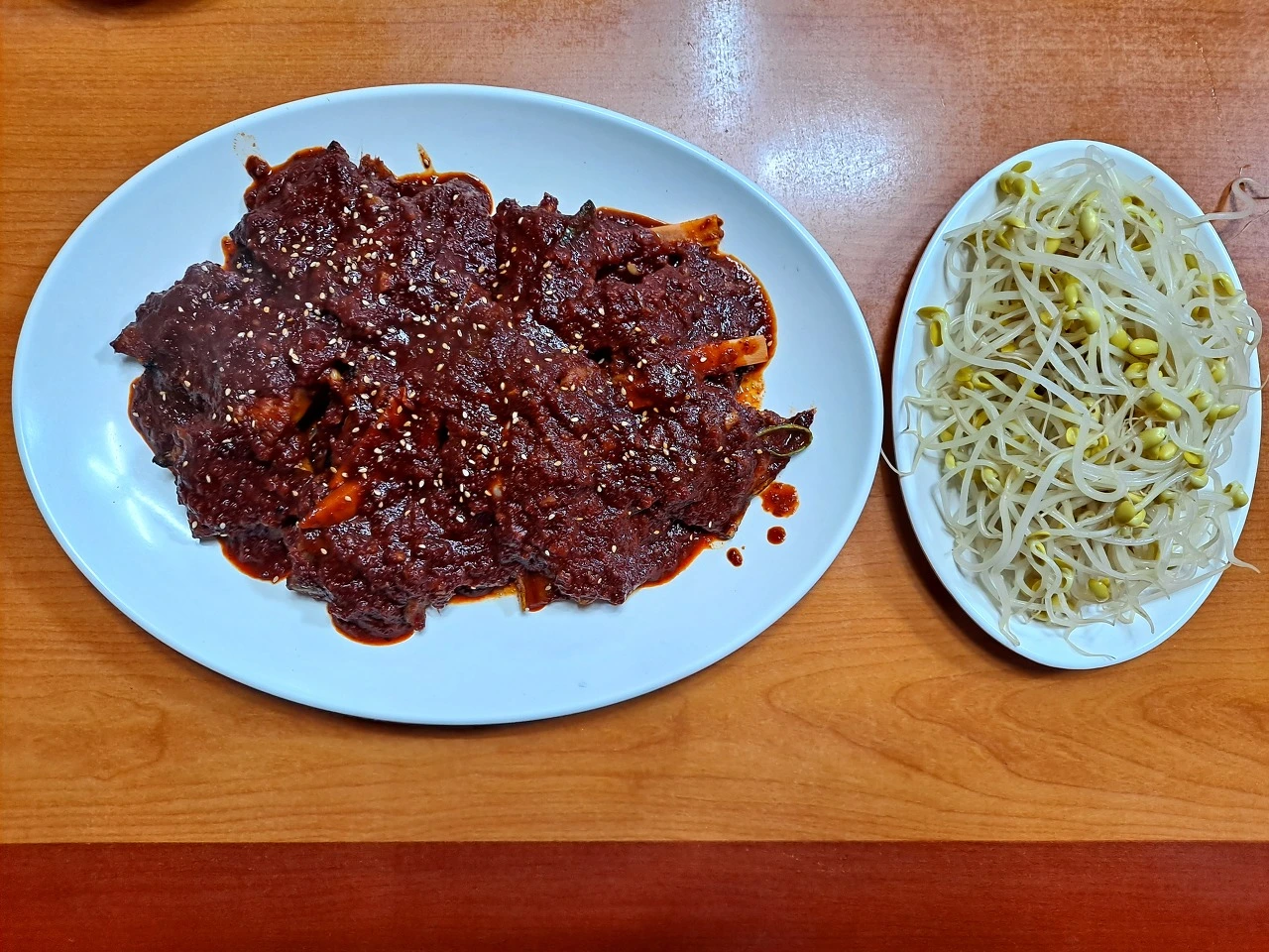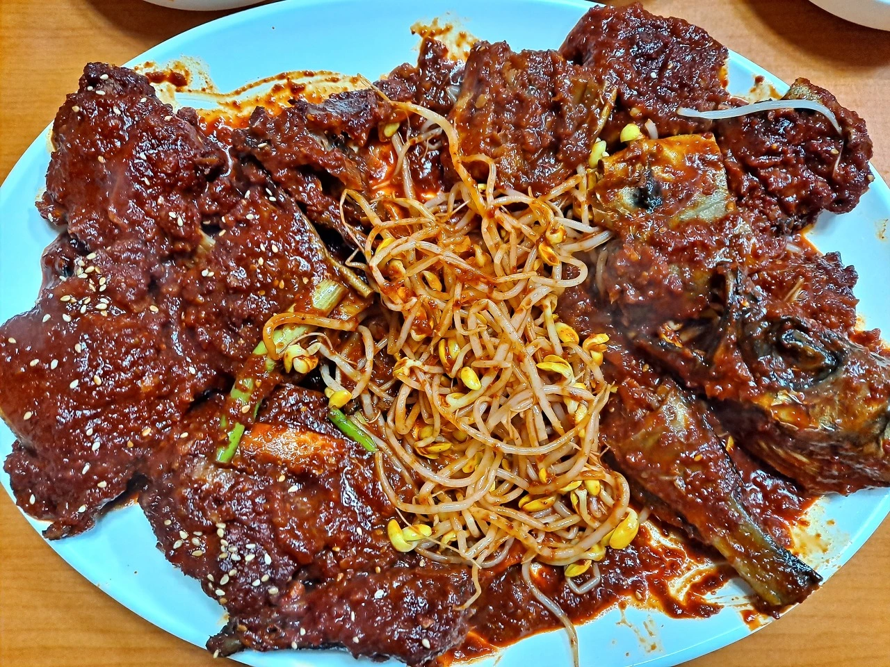 앞 접시에 명태를 담아 맛을 본다. 젓가락으로 빨간 양념에 버무려진 명태를 슥 긁어 본다. 연한 갈색빛을 띠는 속살이 보인다. 건조의 물증이다.