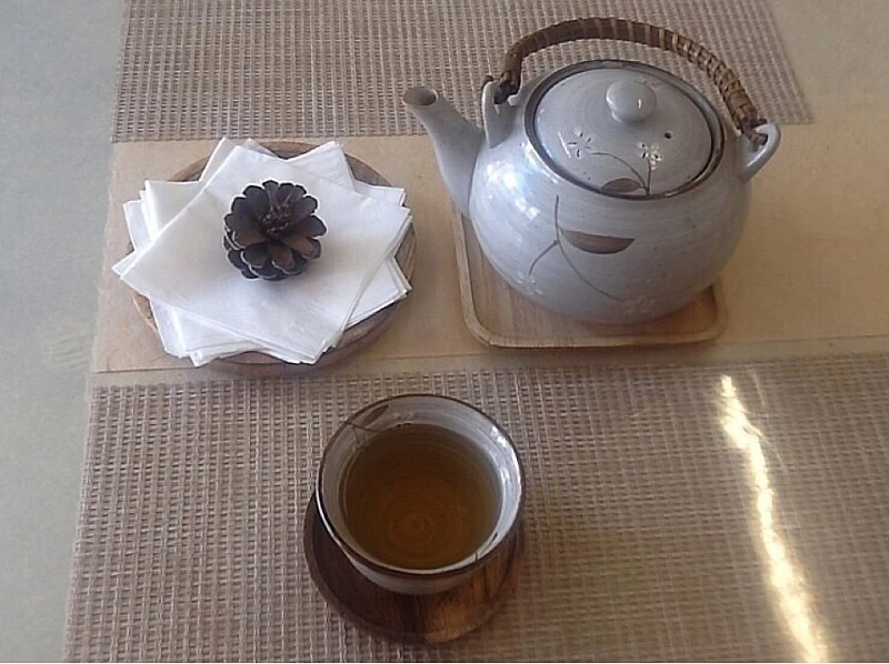 음식이 나오기전 구수한 우엉차로 입과 속을 달랬다. 내부에 걸린 ‘밥은 사랑이다’란 글귀와 냅킨 위 솔방울이 인상적이었다.