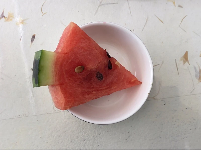 잡고 먹기 편하게 껍질 부위 손잡이를 만든 수박 한 조각은 달큼하고 시원하다. 단맛은 금세 사라지지만, 여사장님의 손님에 대한 배려는 붉은 수박빛처럼 각인된다.