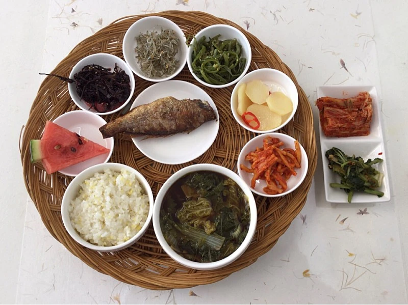 꼬독꼬독 씹히는 지누아리무침, 잔 멸치 볶음, 미역 줄기 무침, 사근사근 씹히는 감자조림, 아삭한 무생채 등 밑반찬과 짭짤한 껍질 부위와 부드럽고 고소한 속살의 조기구이 반찬을 하얀 그릇에 담는다. 식품 첨가물 사용을 하지 않는다. 정갈하고 소박한 밥상이다. 표현할 것은 다 표현하여 부족함이 없는 밥상이다.