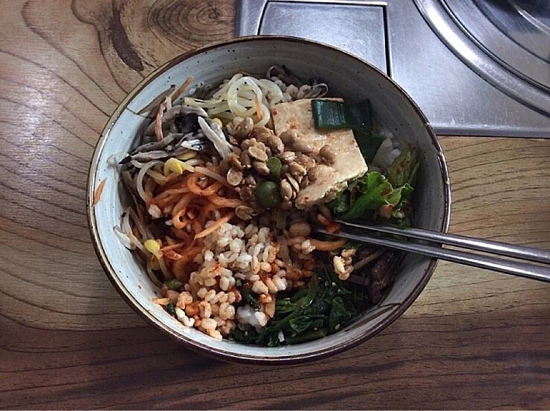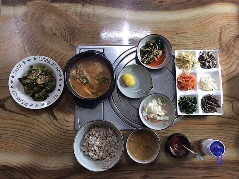 보리밥을 주문한다. 먼저 내준 구수한 꽁보리밥 숭늉과 쫀득쫀득한 호박 감자떡을 먹고 있다 보면 꽁보리밥에 신선한 재료의 맛을 살려 자극적이지 않게 간한 깔끔하고 담백한 밑반찬과 뚝배기에 청국장찌개를 넉넉하게 담아 내준다.