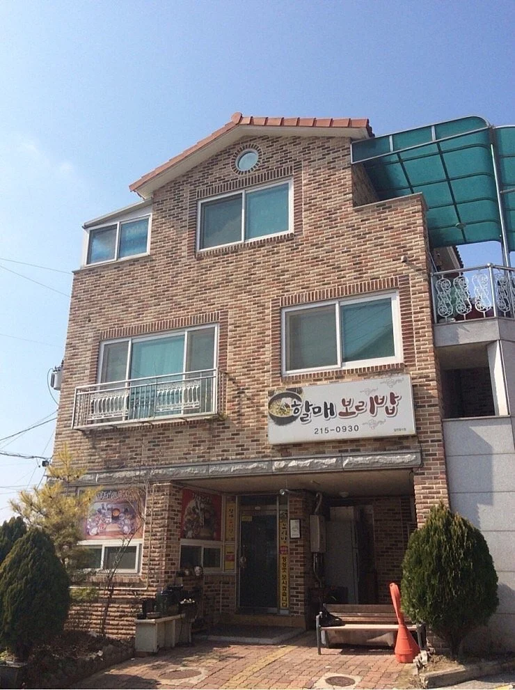 할매보리밥은 청주 안덕벌 예원빌리지 맞은편 언덕에 있다. 젊은 여사장님이 운영한다. 4인용 좌식 테이블 9개 정도가 있는 보리밥 전문점이다. 내부는 가정집 방 분위기 같다.