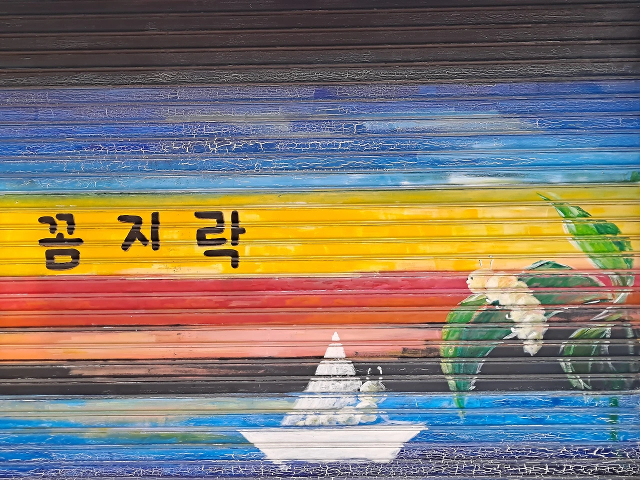 청주 육거리시장으로 가는 늙고 낡은 골목, 셔터에 그려진 그림이다.