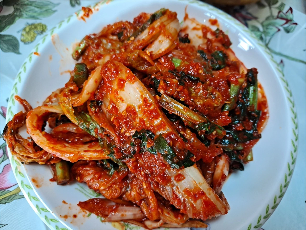 빨간 양념에 하얗고 노란 배추와 푸른 갓이 보이는 포기김치를 길쭉하게 찢어 맛본다. 갖은양념에 버무려졌지만, 밭의 기운이 그윽이 남아 있는 배추의 풋내가 싱그럽다. 아삭하게 씹히며 시원한 맛을 낸다. 김칫소로 넣은 통통한 갓도 푸름을 잃지 않고 사각사각 씹힌다. 알싸한 풍미도 그대로다. 고춧가루 양념과 젓갈의 맛은 아직 여리다.
