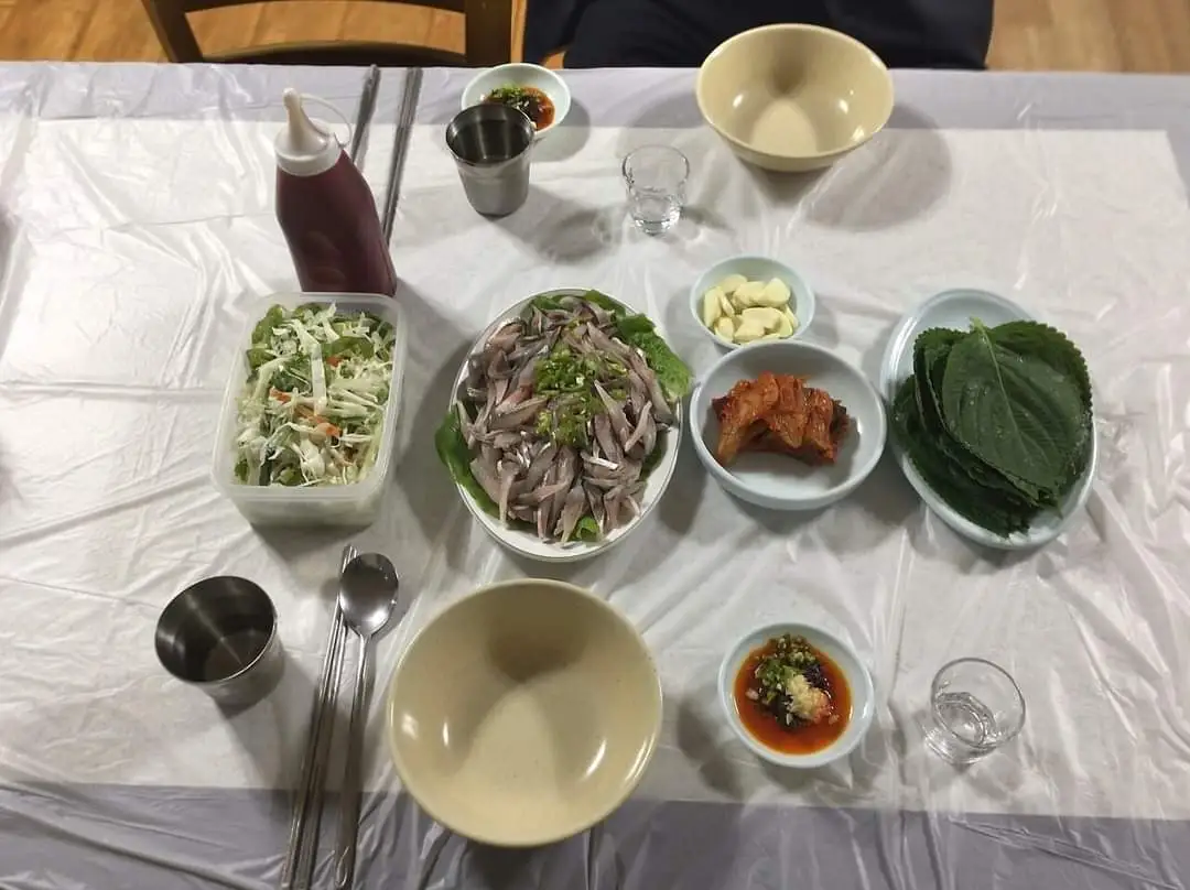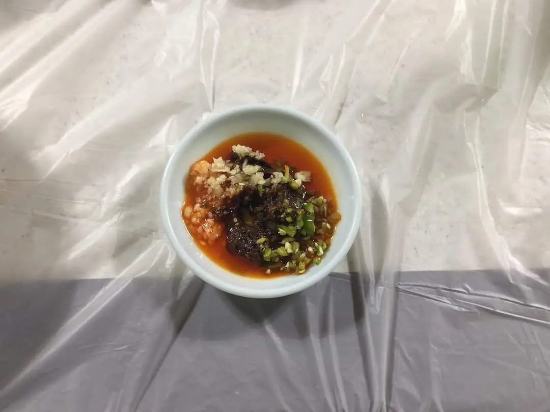 고추기름, 다진 마늘, 칼칼한 청양고추, 짭짤하고 구수한 된장 등을 섞은 다진 양념을 잘 썩은 후 전어회를 찍어 먹는다. 탄력 있는 육질과 연한 뼈가 씹히는 전어회에 다양한 맛이 더해지며 입안이 풍성함으로 가득하다.
