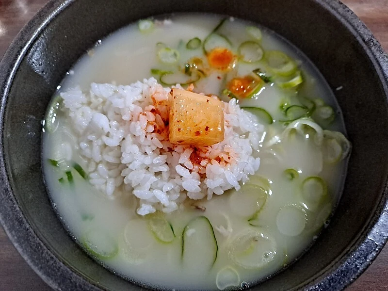 남은 국물에 다진양념, 깍두기 국물, 밥을 넣어 말고 깍두기와 배추김치도 얹어 먹는다. 맛의 변주는 개인의 선택이다.