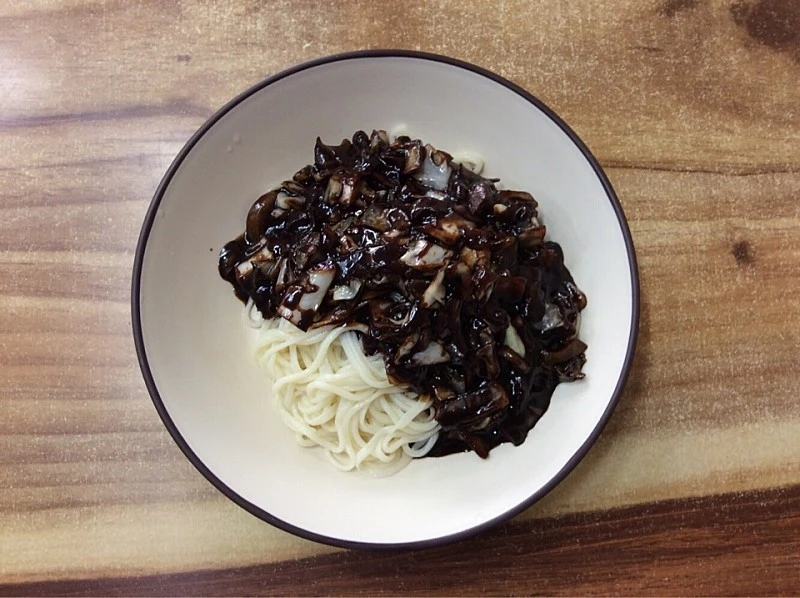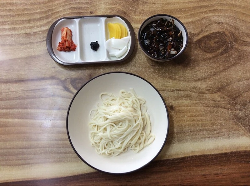 백에 흑이 포개진다. 기름진 검은 간짜장 양념이 첨가제 사용 없는 순수한 손면을 빼앗기 전이다. 젓가락으로 골고루 섞는다. 흑과 백이 섞이며 먹음직스러운 갈빛을 만든다. 간짜장 양념의 고소함도 구석구석 스며든다.