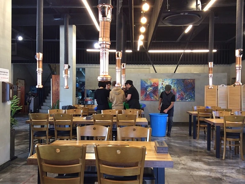 2017년 방문했을 때 종업원분들과 함께 식재료 손질하는 임지호 님을 멀리서 볼 수 있었다.