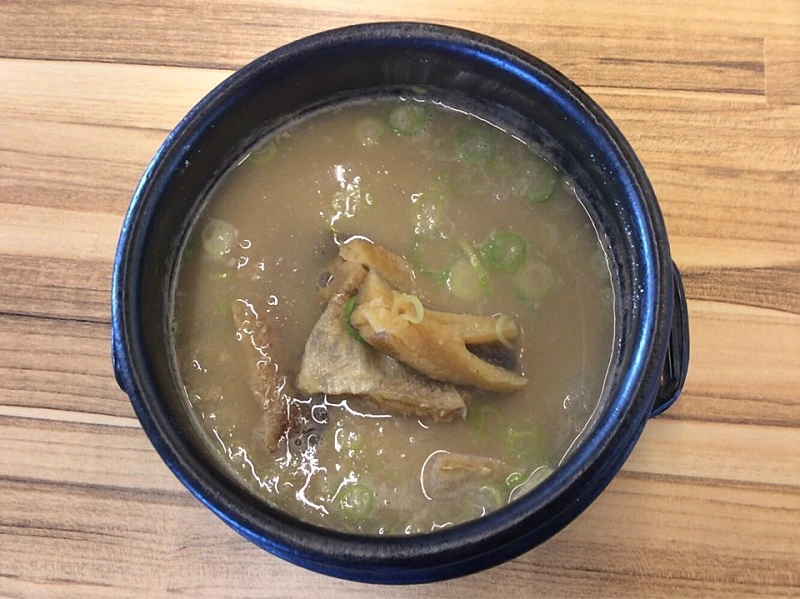 야관문 우린 물을 먹고 있으면 공깃밥과 뚝배기에 한소끔 끓여 내온 황태보탕을 내온다.