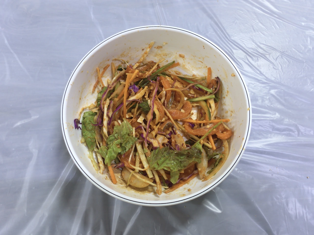 신선한 채 썬 채소의 다양한 식감에 고소한 맛, 감칠맛, 새콤한 맛, 알싸한 맛, 달곰한 맛 등이 한데 어우러지며 입안이 풍성해진다.