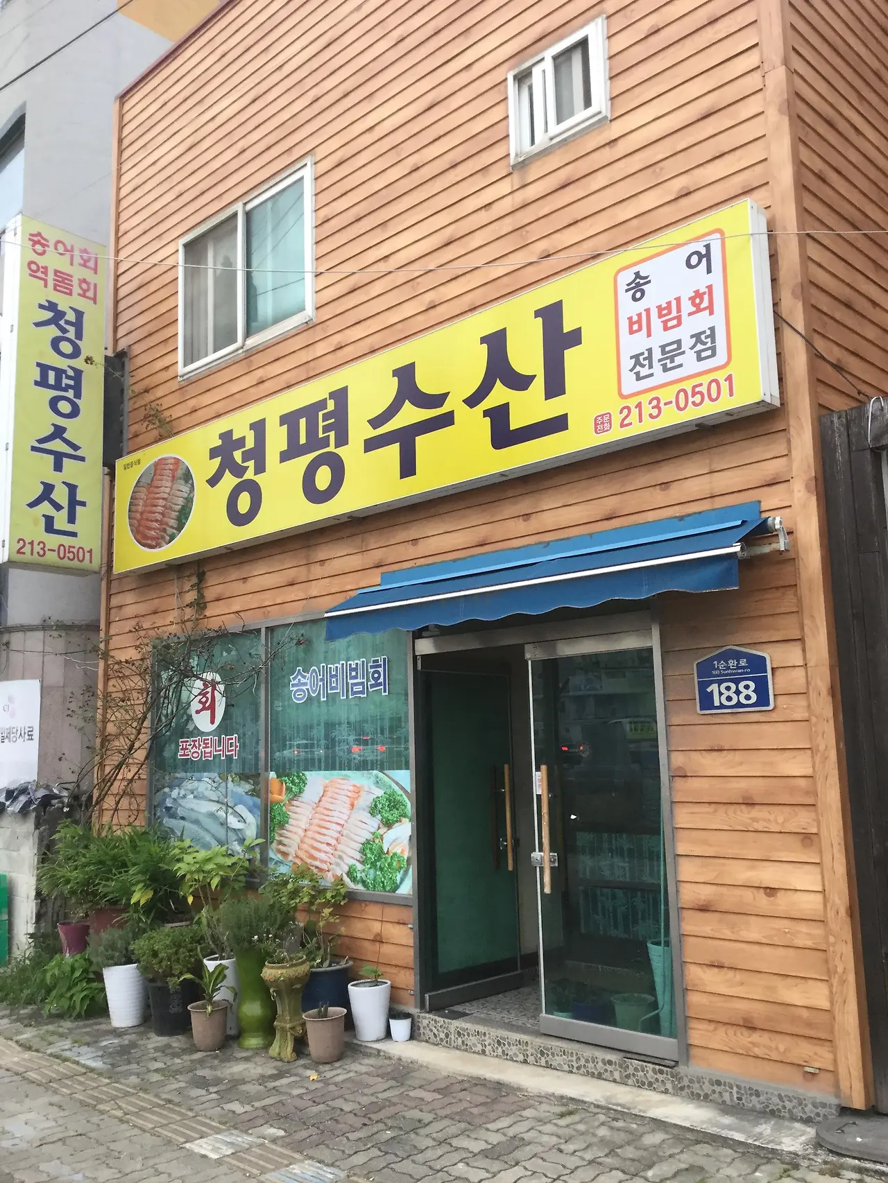 청평수산은 청주 율량교 사거리 사천교 방향 대로변에 있는 송어 전문 횟집이다. 친절하고 수더분한 중년의 부부분이 운영한다. 포장해 가는 손님도 많다. 포장하면 5,000원 싸다. 송어회를 맛본 후 주문해 먹는 매운탕이 맛깔나다.