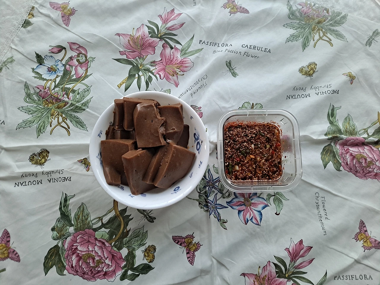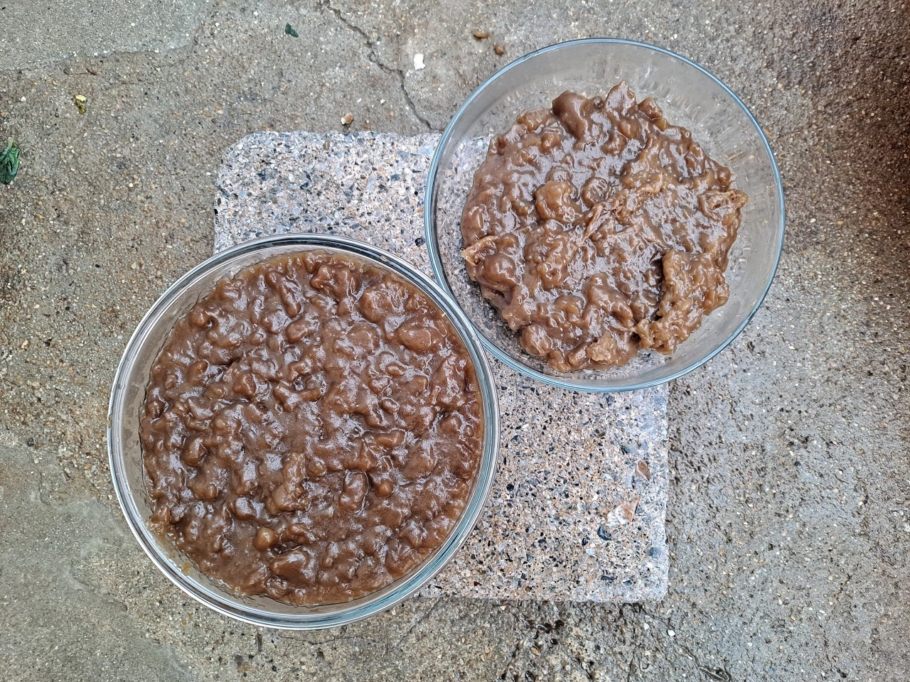도토리가루 만들기까지도 고되지만, 도토리묵 만드는데도 시간과 정성이 많이 들어간다. 도토리가루, 물, 소금, 참기름만 넣은 찐 도토리묵이다.