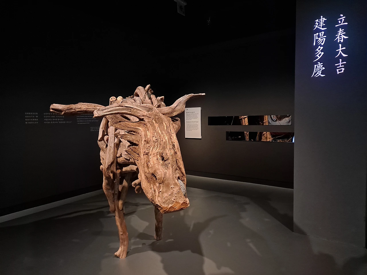 서울 국립민속박물관 목우와 입춘첩이다. 목우는 제주도의 입춘굿에 등장하는 나무로 만든 소로, 제주도에서는 ‘낭쉐'라고 부른다. 이 소는 입춘굿의 모의 농경에 등장하며, 풍농을 기원하고 농사의 시작 시기를 알리는 역할을 한다. 조선 시대 이원조李源祚, 1792-1871가 쓴 『탐라록耽羅錄』(1841)에는 관복을 갖춰 입은 호장戶長이 나무로 만든 소를 끌고, 기생들이 좌우에 서서 이를 따르는 모습이 나온다.