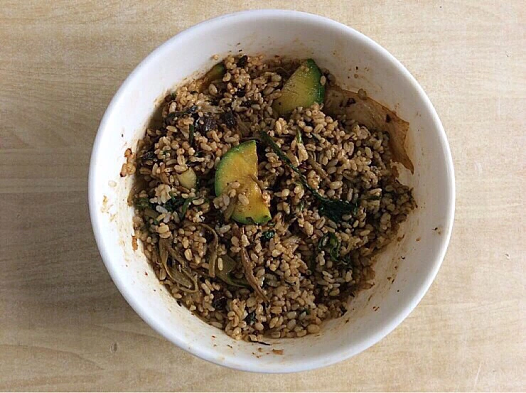 검은 빛을 띠는 강된장이 속재료와 보리밥 한알 한알 묻혀지며 갈색빛으로 바뀐다. 여러 식재료들의 질감과 맛이 한데 어우러진다. 삼삼한 식재료에 짭짤하면서도 짙고 구수한 맛이 배이며 간도 맞추고 풍미를 돋운다.