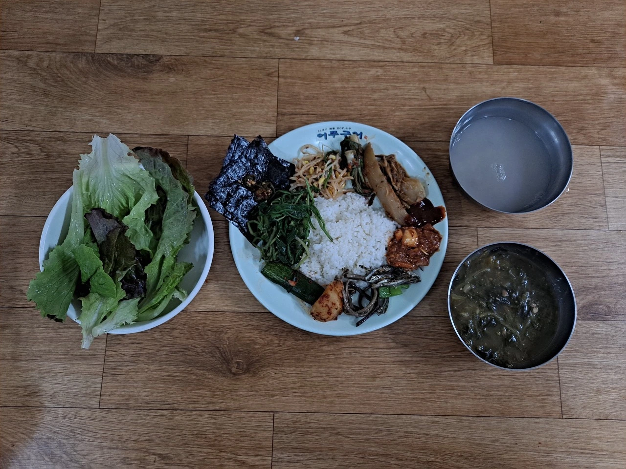 원하면 더 가져다 먹어도 된다. 사찰 식사 공양하는 기분이 든다. 첫번째 맛본 삼천 원의 만찬이다.
