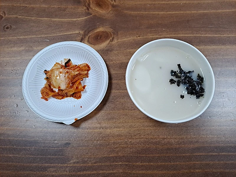 충청북도 제야의 종 타종 행사 후 용화사 공양간을 찾는다. 용화사 타종식이 끝난 공양간엔 스무명 남짓 불자분들이 계신다. 공양간 여 불자님이 떡국을 담고 김 가루를 뿌려 주신다. 떡국과 김치를 들고 식탁으로 향한다.