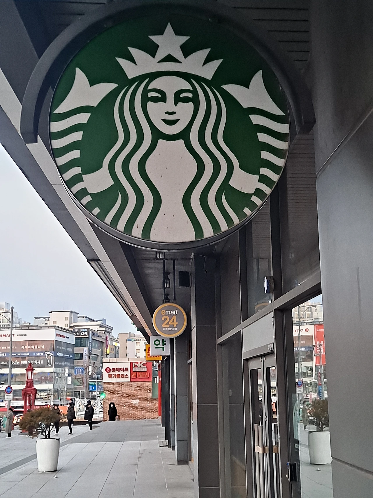 출근 버스를 기다리는 사람들
