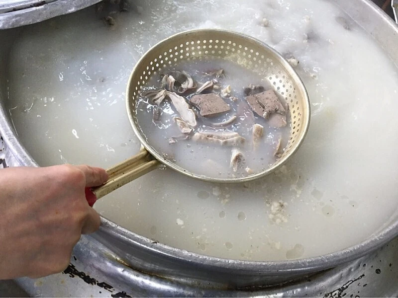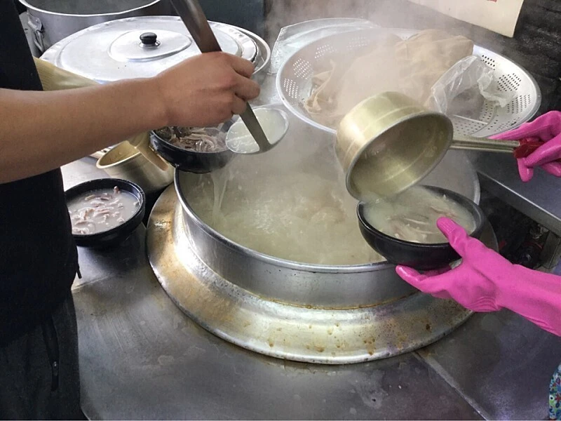 숟가락으로 국물과 건더기를 크게 떠 맛본다. 삼삼하게 간한 맑고 구수한 육수 사이로 토렴한 밥알이 부드럽게 씹힌다. 밥과 국물의 온도가 먹기에 알맞다. 토렴의 힘이다. 촉촉하고 고소한 간, 졸깃한 오소리감투, 쫀득한 돼지 머릿고기등도 제각각 식감과 풍미를 더한다.