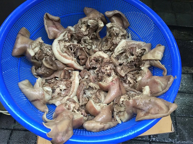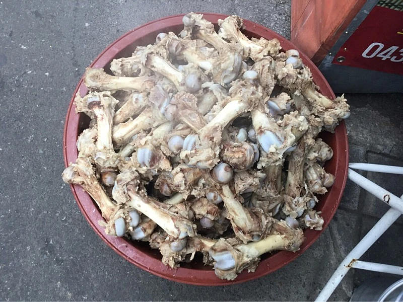 식당 앞에 육수 우려낸 돼지 사골과 돼지 머리뼈가 보인다. 돼지머리 고기는 국밥 건더기나 수육으로 맛볼 수 있다.