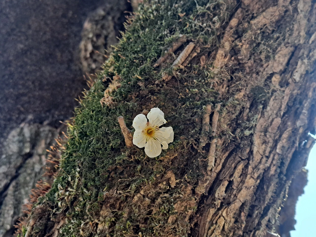 각황전 옆 홍매화가 화려함의 극치라면 이 매화는 소박하고 수수하다. 나무의 수형도 비스듬히 뒤틀려 자란다. 단아한 기품의 들매화다.