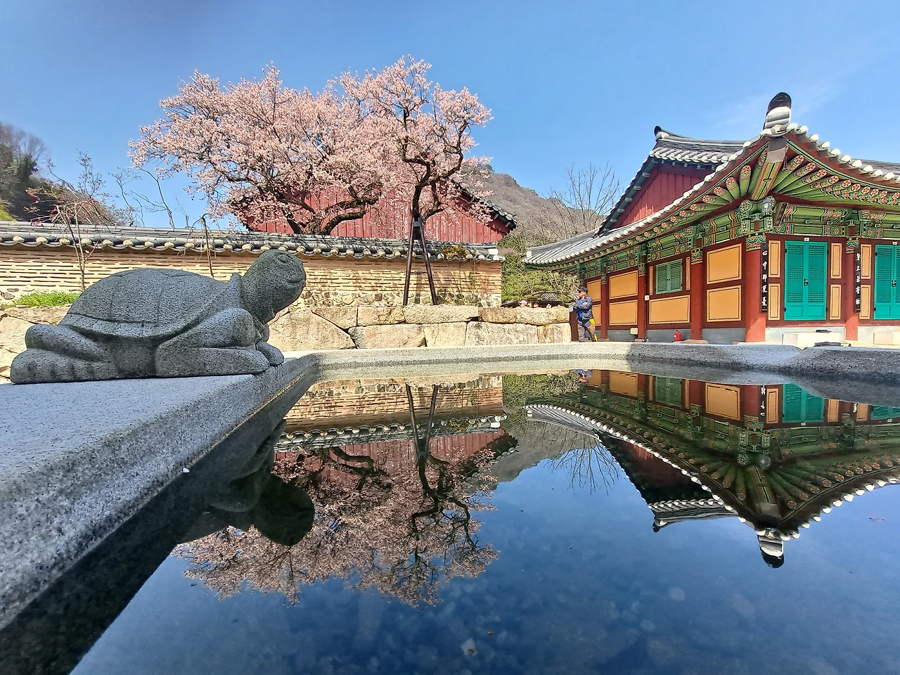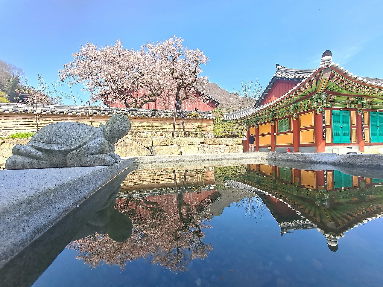 돌거북이 고개를 들고 고불매의 은은한 향을 맡는듯하다. 눈은 무심히 하늘만 바라볼 뿐이다. 매화 보기는 돌거북처럼….