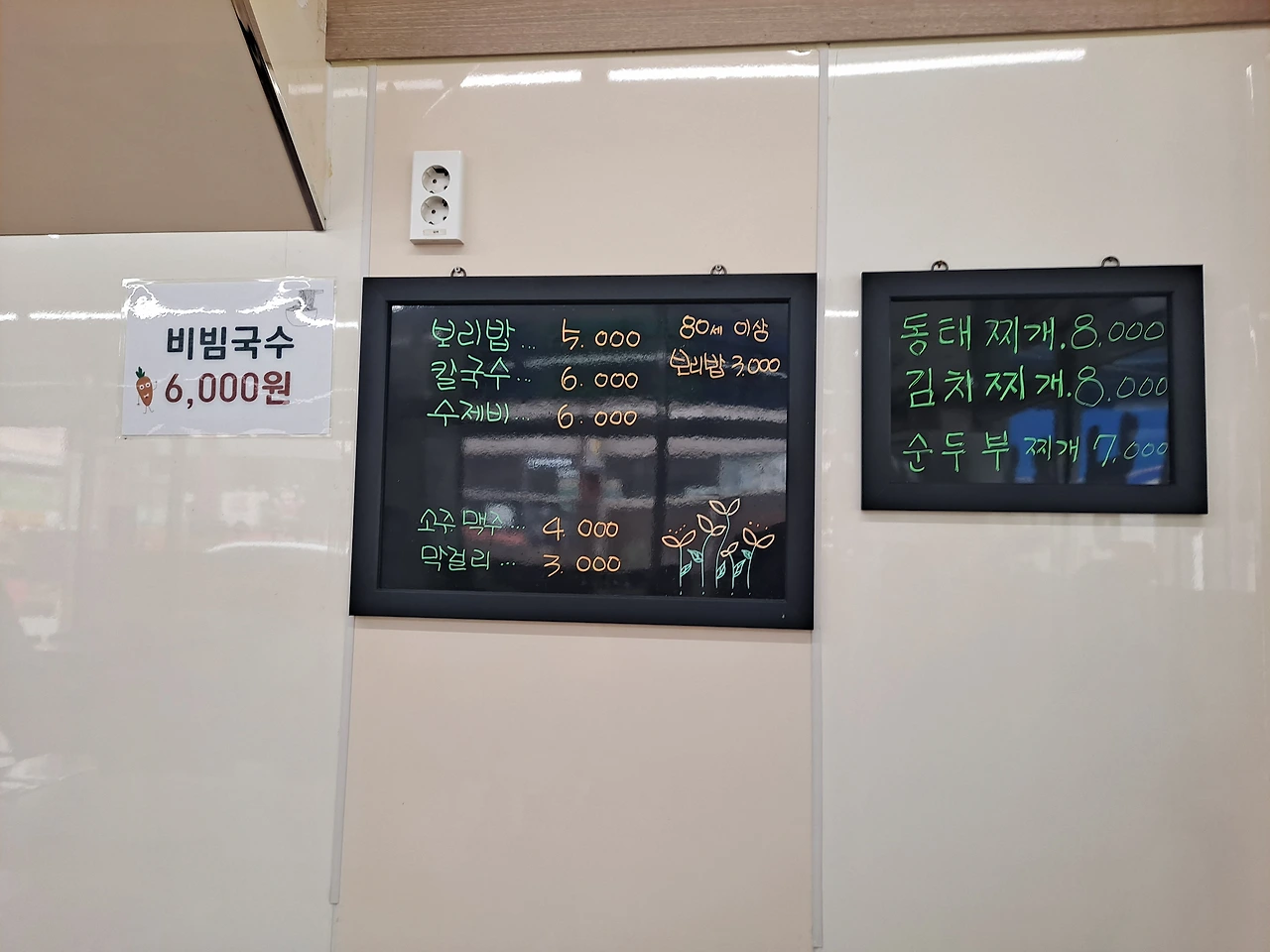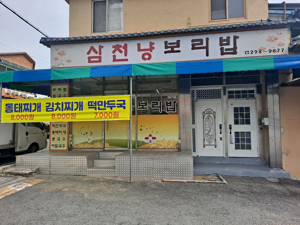 삼천냥보리밥은 여름에 들려 콩국수를 먹은 곳이다. 메뉴판에 '80세 이상 보리밥 3,000원'이란 글이 눈에 띈다. 시골 어르신들에게 신선하고 건강한 음식을 싸게 대접하려는 주인장의 마음 씀씀이가 엿보인다.