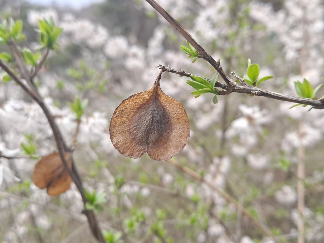 미선나무는 열매의 모양이 부채를 닮아 꼬리 미(尾), 부채 선(扇)자를 써서 미선나무라 부른다. 하트처럼 생겨서 사람들의 시선을 사로잡는다. 다 익은 미선나무의 열매 속에는 두 개의 씨앗이 들어 있다.