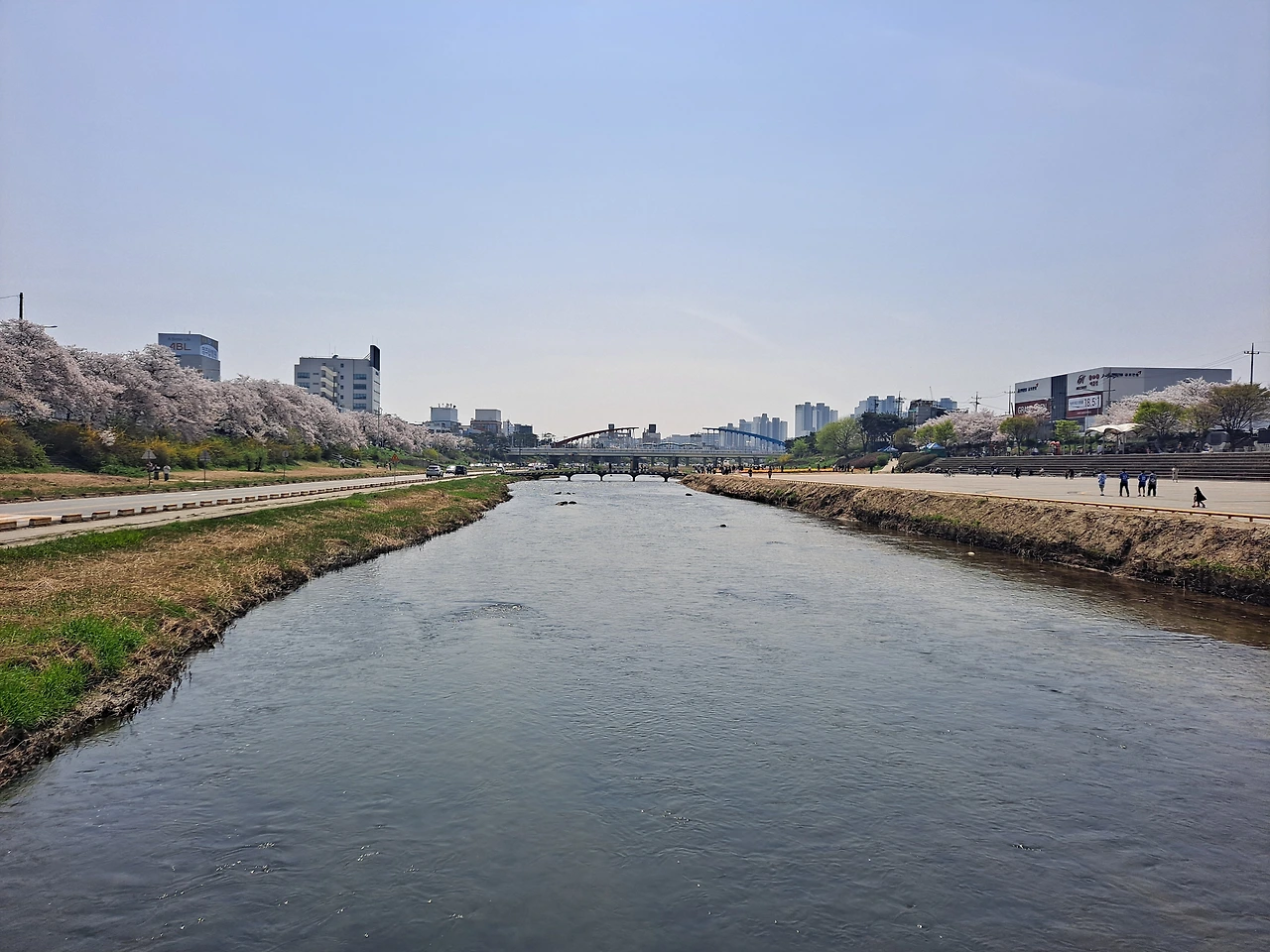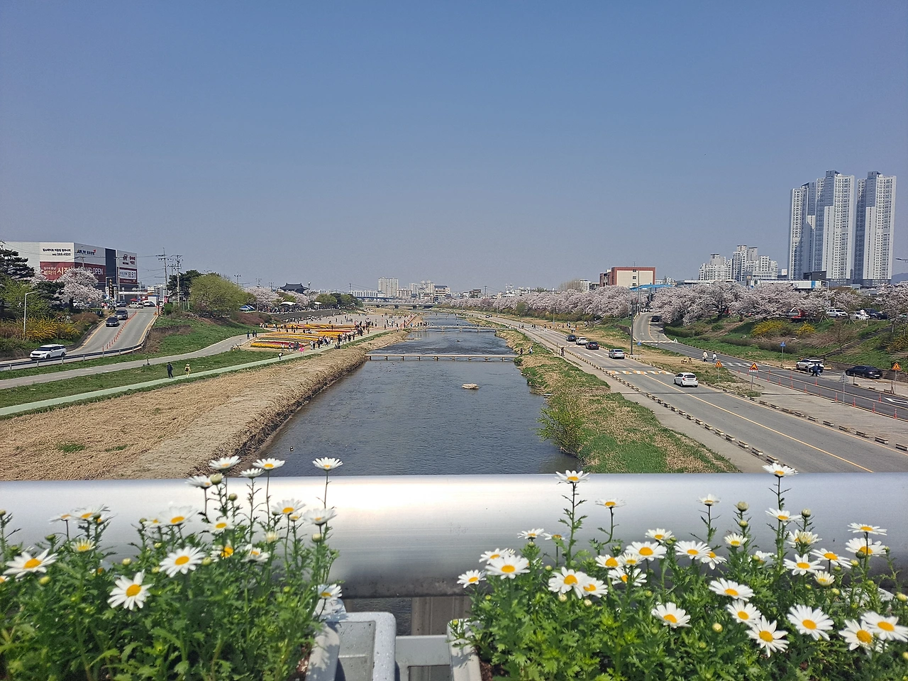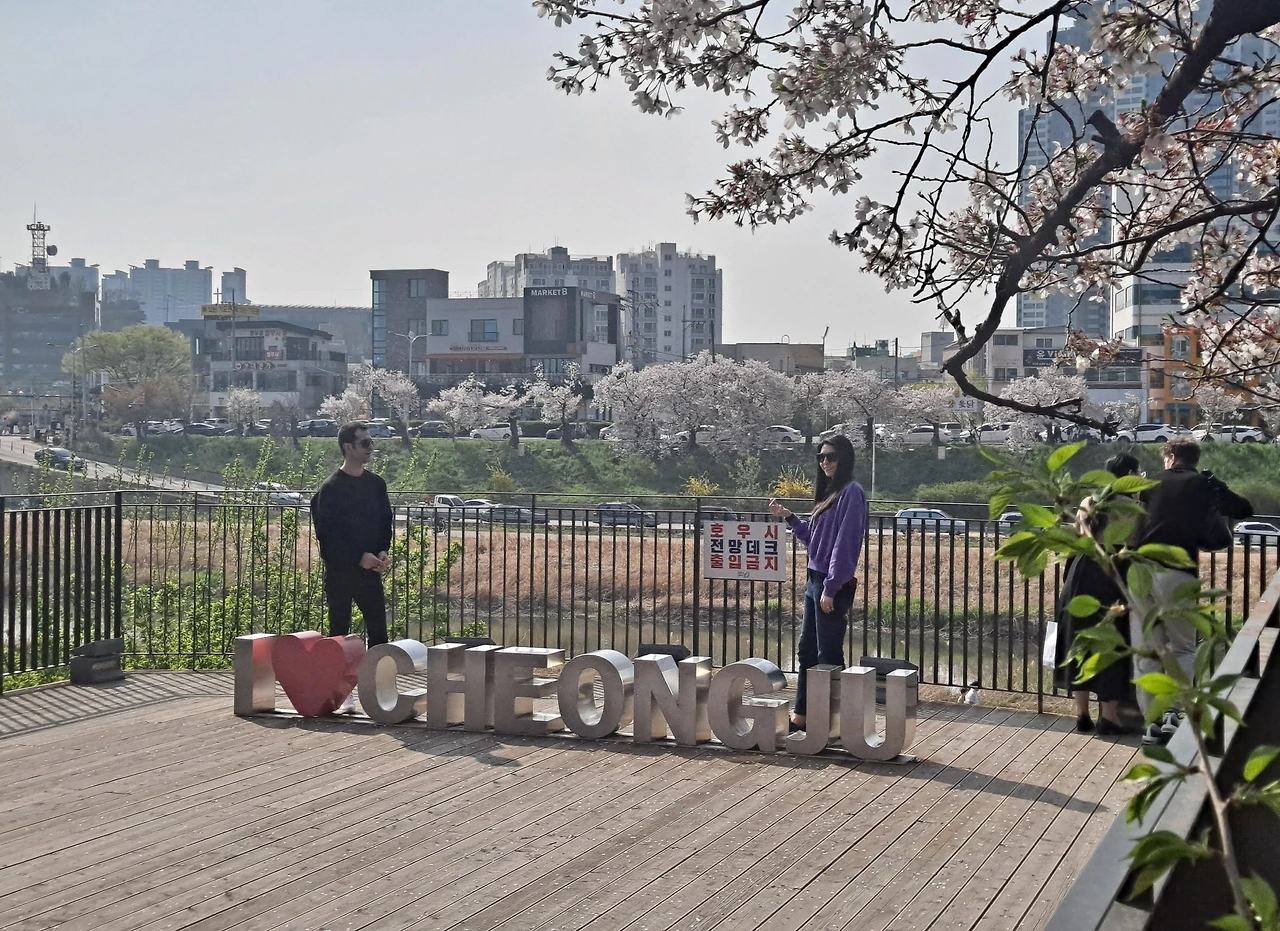 4월 첫째 주 주말을 맞아 무심천 벚꽃길에는 남녀노소, 외국 분들이 만개한 벚꽃을 보기 위해 나들이를 나왔다. 푼더분하게 핀 벚꽃을 배경으로 사진을 찍거나 벚나무 아래서 휴식을 취하며 봄을 만끽한다.