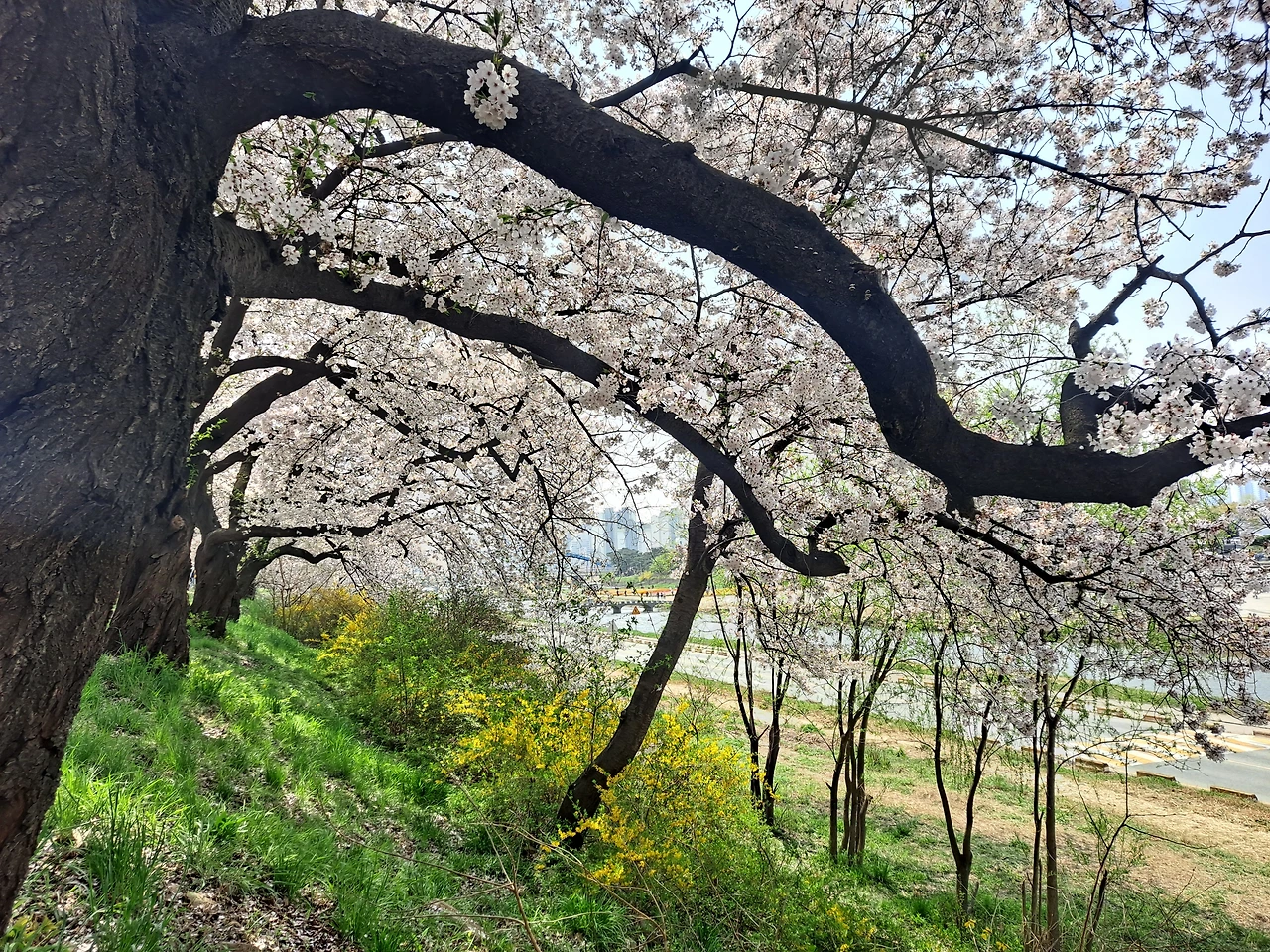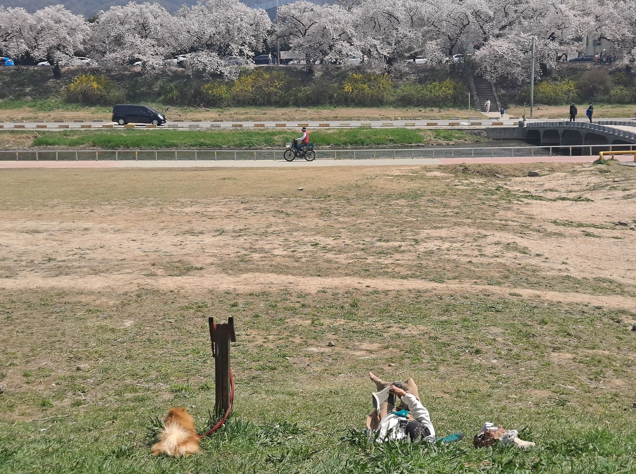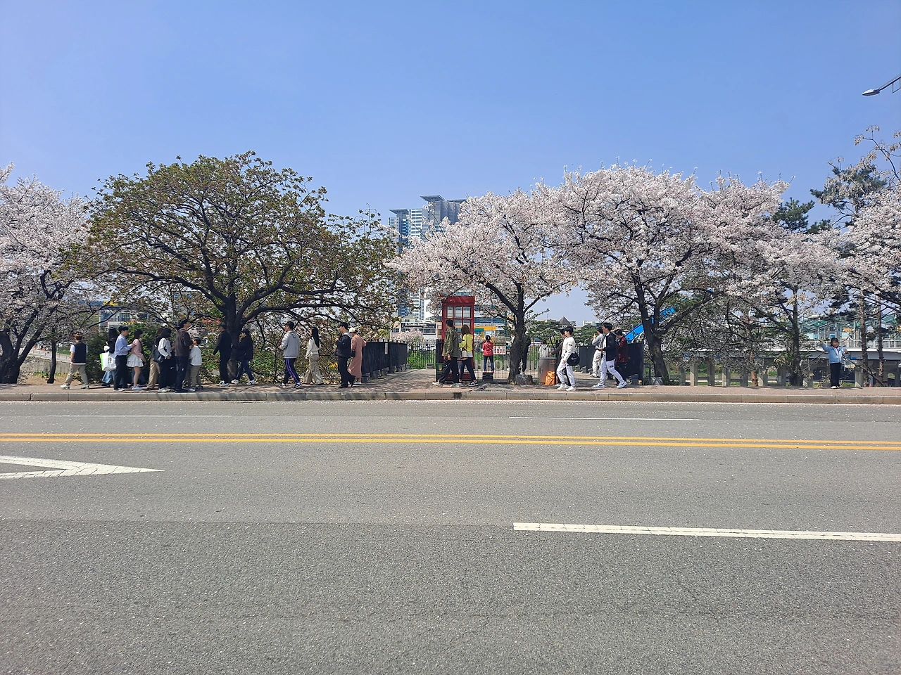 4월 첫째 주 주말을 맞아 무심천 벚꽃길에는 남녀노소, 외국 분들이 만개한 벚꽃을 보기 위해 나들이를 나왔다. 푼더분하게 핀 벚꽃을 배경으로 사진을 찍거나 벚나무 아래서 휴식을 취하며 봄을 만끽한다.