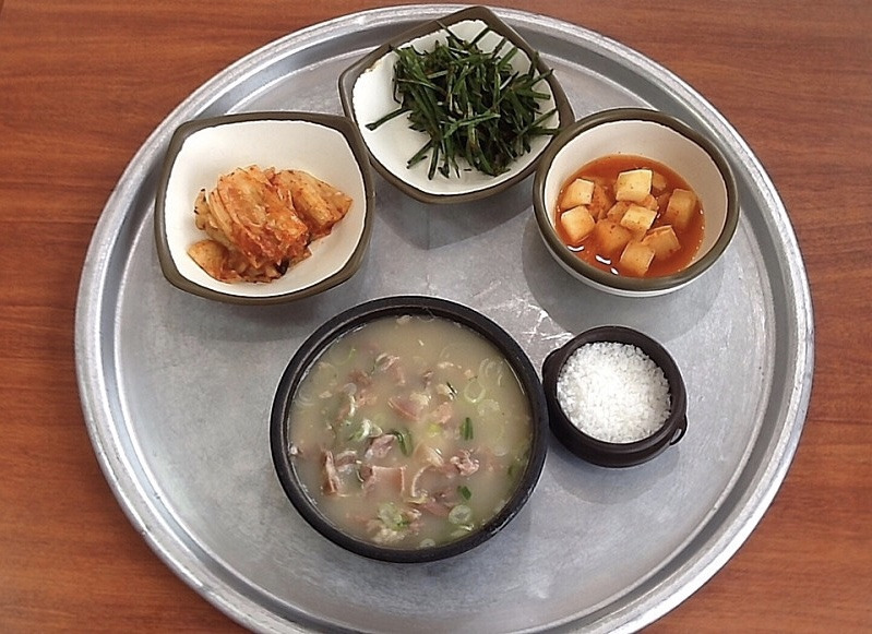 숟가락으로 건더기와 국물 아래 밥을 뒤섞는다. 건더기와 밥을 국물과 함께 푹 떠서 먹는다. 식은 밥에 뜨거운 육수가 스며들어 먹기 알맞은 온도를 만든다. 고소하고 진득한 국물을 머금은 토렴한 밥알들은 서로 엉기지 않고 고슬고슬하다. 썬 대파와 고기 등 다른 물성이 중간중간 리드미컬하게 씹히며 어금니를 희롱한다.
