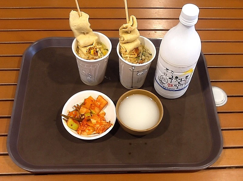 설천봉에 내리니 안개도 많이 끼고 바람도 세차게 불어 바로 앞을 보기 힘들다. 설천봉 레스토랑에서 따뜻한 어묵꼬치 국물로 추위를 달래고, 무주구천동 쌀막걸리로 아침을 대신한 후 향적봉으로 향한다.