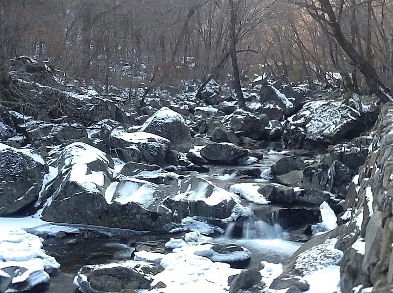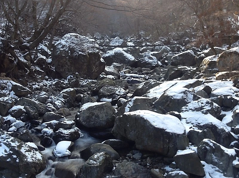 구천동버스정류장으로 내려가며 무주 구천동계곡의 겨울풍경을 즐긴다.