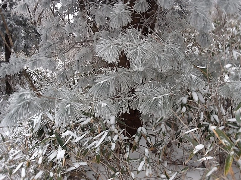 향적봉으로 오르는 길 주위로 나무 줄기와 잎, 바위 등이 눈 내린 채로 얼어 있다. 상고대의 아름다움이 추위를 잊게 해주며 덕유산 정상으로 향하는 발걸음을 이어지게 한다.