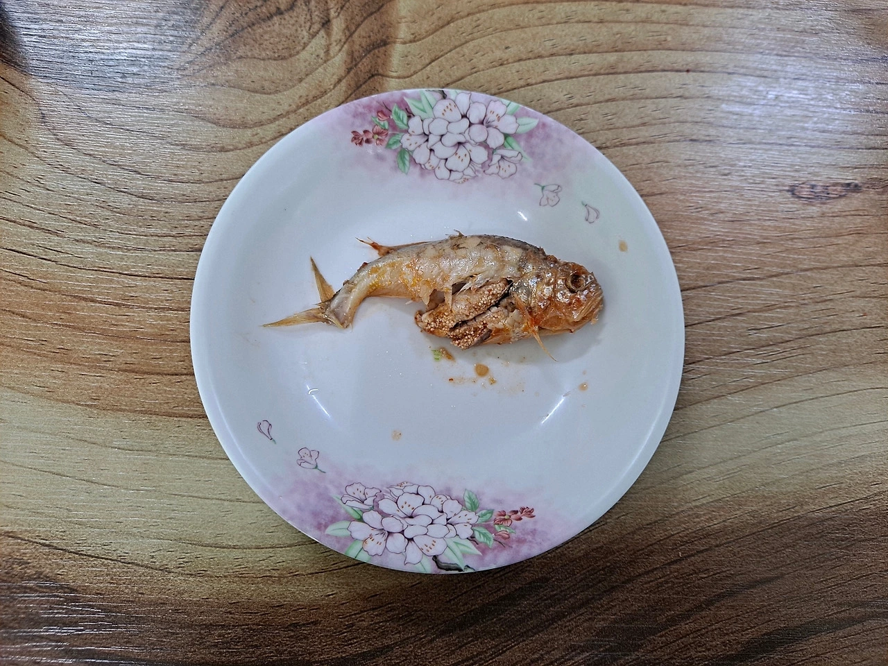 막걸리 안주로 여사장님께 추천받은 황석어 튀김을 주문한다. 황석어를 약간 두툼한 반죽옷을 입혀 튀겼다.