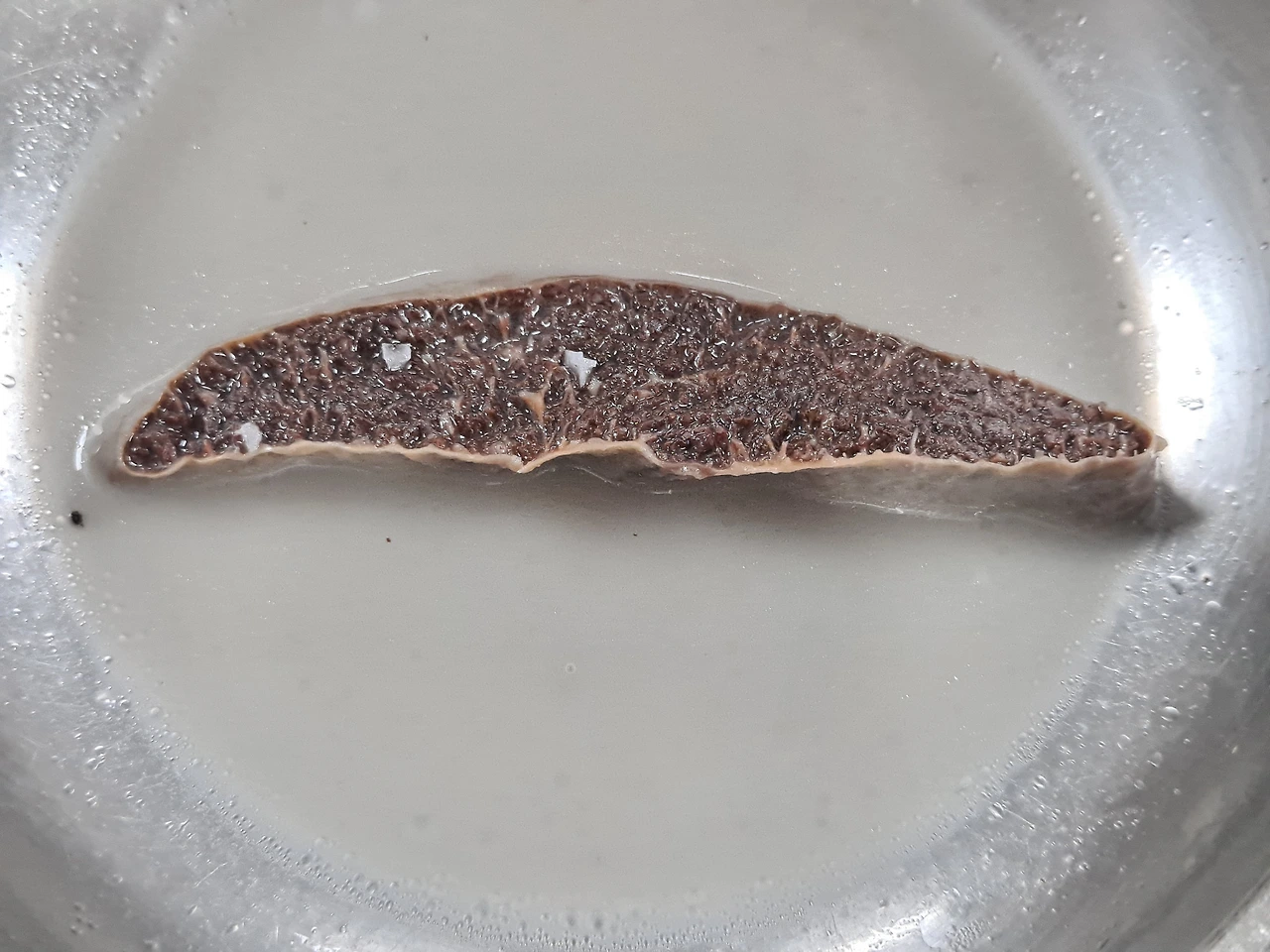 소금으로 간을 하고 다시 맛본다. 소금이 섞이며 지복점(욕망이 충족된 상태를 나타낸다.)을 끌어냈다. 국물이 조화를 이루며 풍미와 고소함이 깊어진다.