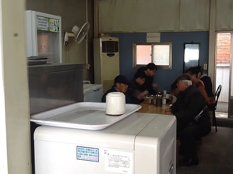 주문 후 옆에 놓인 수저통에서 수저를 나눠 드리고 식당을 훑어본다. 8년 전보다 깨끗해지고 앉을 자리가 늘어난 듯하다. 떠들썩한 대폿집 분위기는 남아있다.