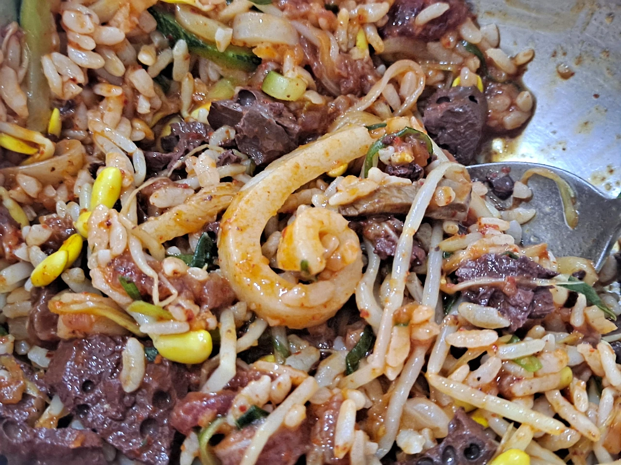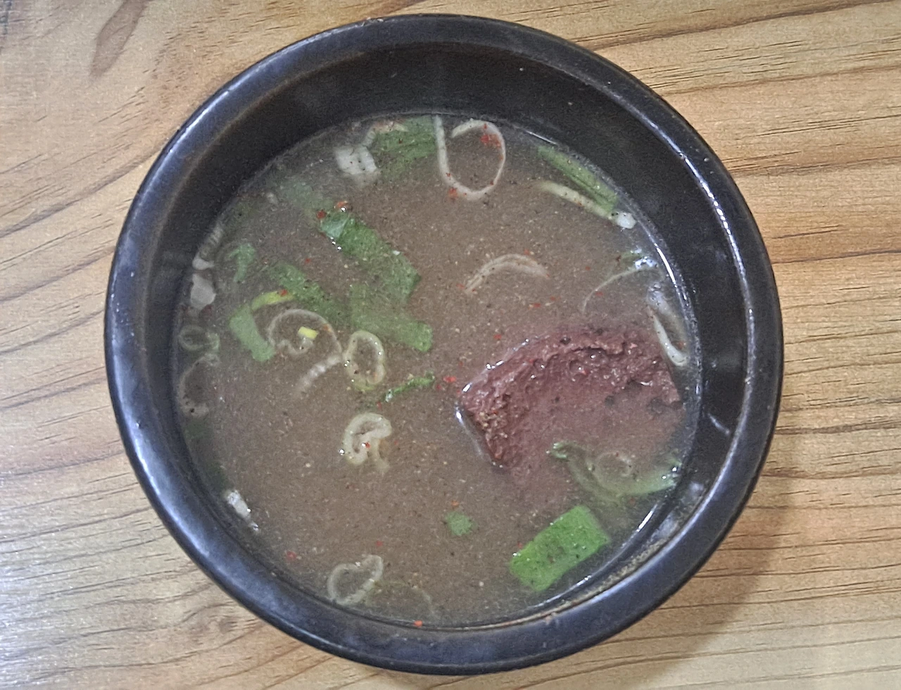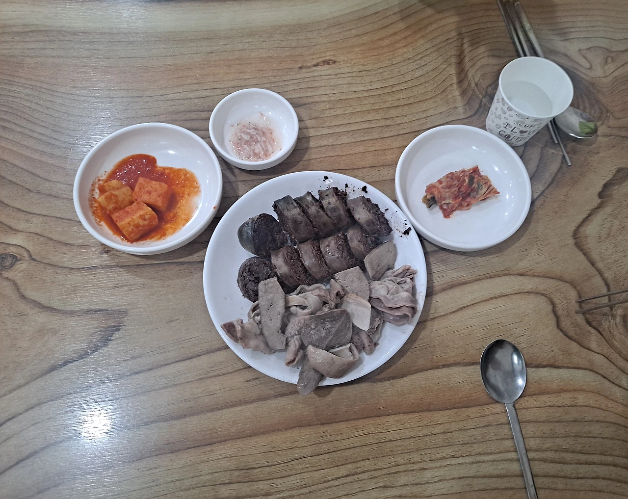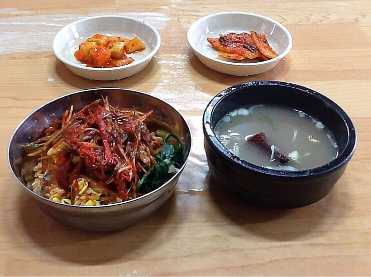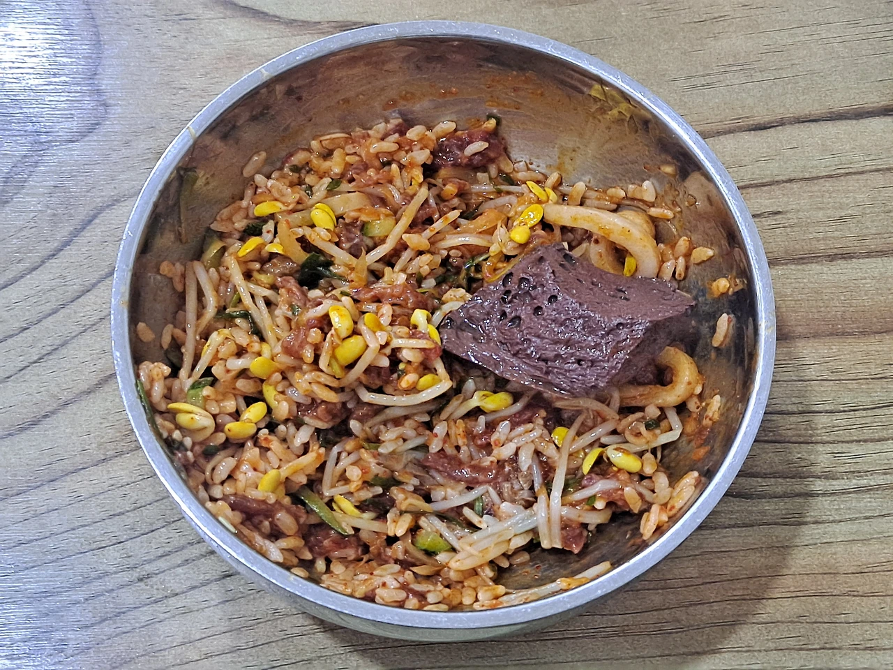 밑반찬으로 나온 깍두기와 김치는 먹지 않았다. 선짓국과 여러 식재료가 담긴 비빈밥 자체만으로 충분했다. 젓가락이 필요 없었다.