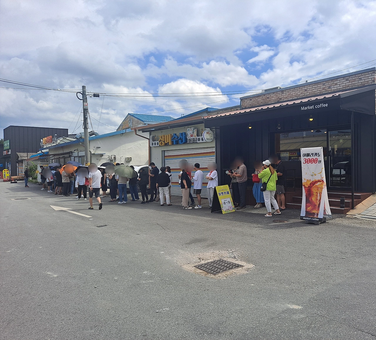 2016년 처음 오고 2024년 7월, 다시 찾았다. 8년 만이다. 첫 방문 때는 줄을 서지 않았다. 시장 주변 식당들 들리며 줄이 길게 선 건 처음 본다. 시장 주차장에도 자가용들이 장애인, 경로우대 자리까지 주차할 정도로 꽉 찼다. 늦게 온 손님들은 주차할 곳을 찾아 시장 밖으로 나간다.