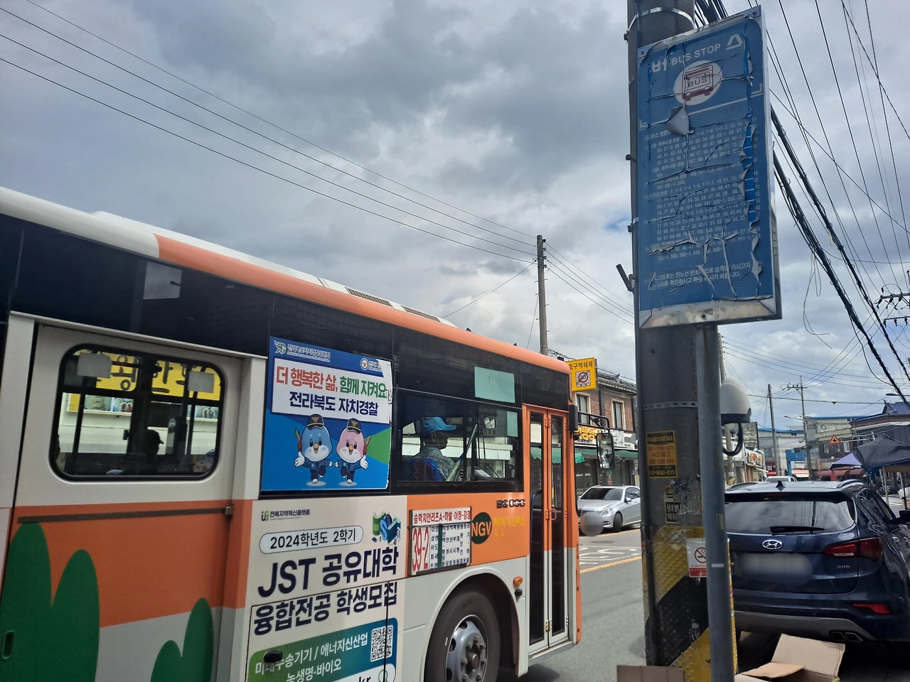 이번 정류장은 황등파출소란 안내 소리가 차가운 에어컨 공기 사이로 흐른다. 찻길 오른쪽으로 한일식당이 보인다. 눈에 담고 다음 정류장인 황등면사무소에 내린다. 10시 29분이다. 정류장에서 시장비빔밥까지 200m 정도 걸어간다.