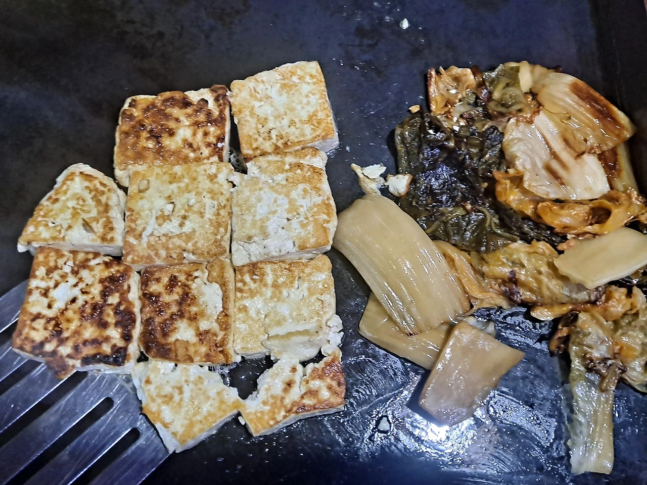 들기름이 둘을 이어주며 노릇하게 익는다.