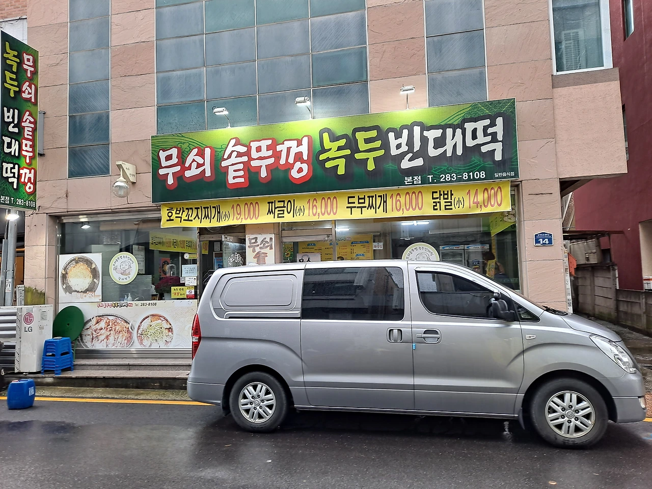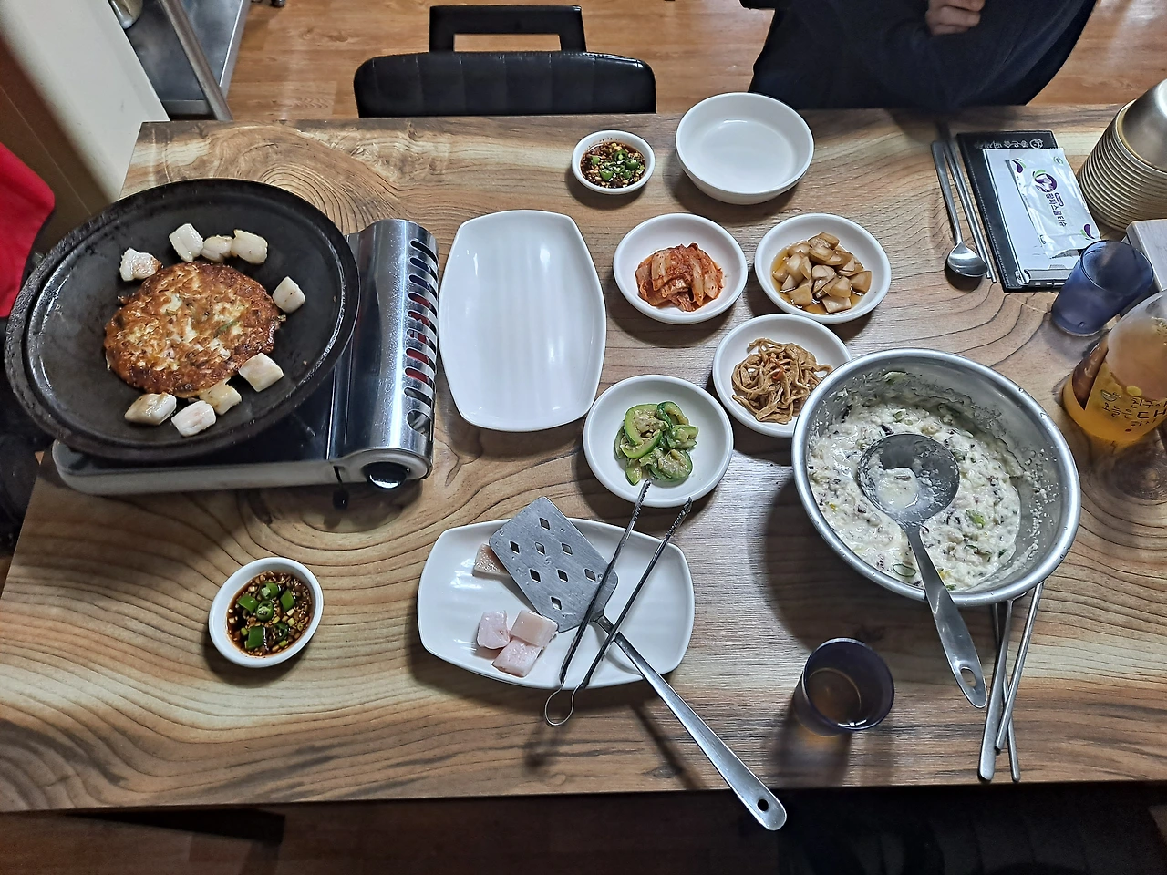 비가 추적추적 내린다. 친구와 함께 찾는다. 뜨내기손님보단 몇 차례 들리신 듯 익숙하게 무쇠 솥뚜껑에 빈대떡을 구워 막걸리 한잔하시는 손님들로 자리가 꽉 찼다. 손님들 연령대가 높다.