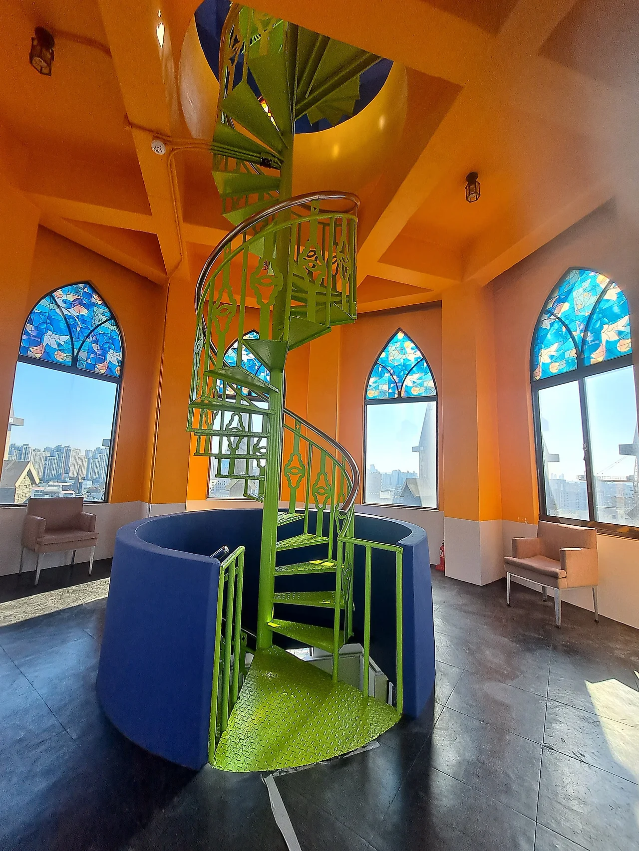 1층에서 열쇠를 받아 엘리베이터를 타고 7층에 내린다. 열쇠로 닫힌 문을 열고 13층까지 나선형 계단을 따라 노을빛 전망대로 오른다. 수원제일교회 교회 종탑에 오르면 수원시 전경을 원형으로 돌아가며 볼 수 있다.