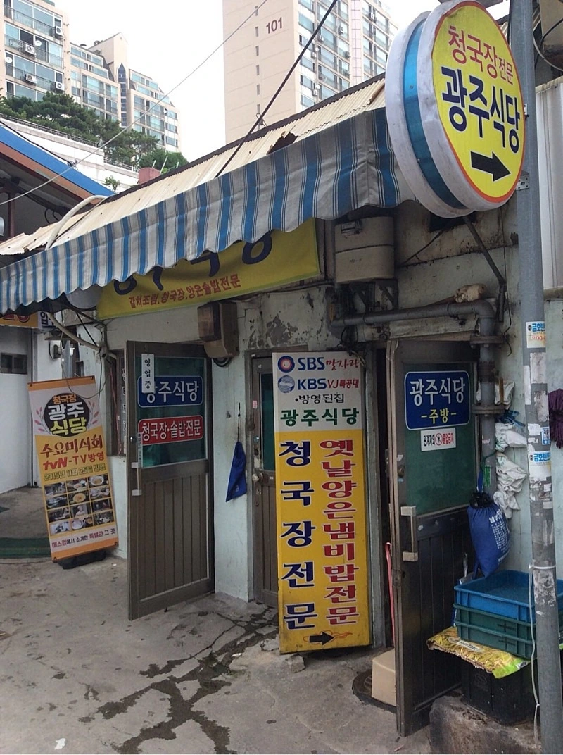 광주식당은 서울 청량리시장 가까이 있는 청국장 전문점이다. 청국장에 2인 이상 손님은 양은 냄비째 밥을 내주고, 혼자 온 손님은 냄비 밥을 공기에 덜어 준다.