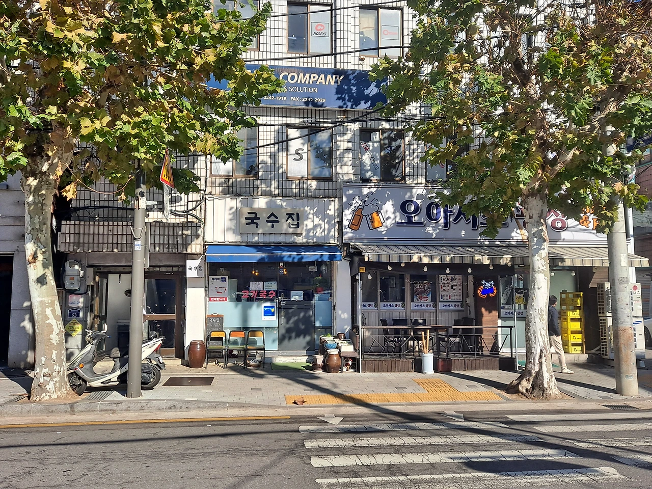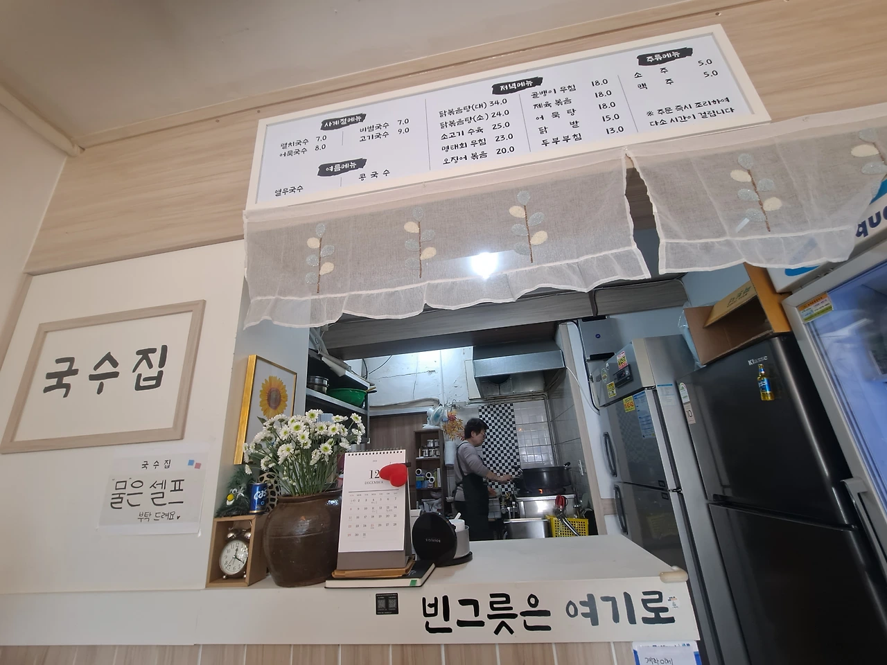 12시 조금 넘어 식당 건너편에 다다른다. 하얀 간판에 검은색으로 쓴 ‘국수집’ 글자가 도드라진다.