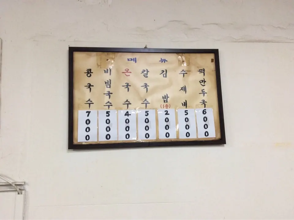 국숫집 문을 들어선다. 빈 입식 자리에 앉아 온국수를 주문하고 식당을 살펴본다. 식당 안은 세월의 흔적은 보이지만 깨끗하고 환하다. 4인용 입식 좌석 6개와 안쪽으로 입식 좌석도 3개 정도가 보인다.