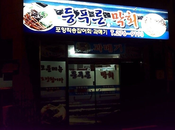 등푸른막회는 청주 하이닉스 기숙사 부근 노부부 두분이 운영하신다. 포항 직송 제철 잡어회와 과메기를 판매했다. 현지 단골분들이 많은 식당이었다. 회와 과메기에 곁들여 먹는 수제 초장과 시쿰한 묵은 김치가 일미였다.