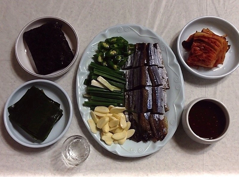 약간의 기름기를 머금은 쫀득하게 잘 말려져 비린 맛은 덜한 고소하고 감칠맛 좋은 꽁치 과메기를 김, 미역, 고추, 쪽파, 마늘, 아삭한 식감의 새금하고 시원한 맛의 삭혀진 묵은 김치와 곁들이거나 새콤, 달짝지근한 초장에 찍어 먹은 후 소주 한 잔 넘긴다. 근심과 피로를 풀어주는 맛이다.