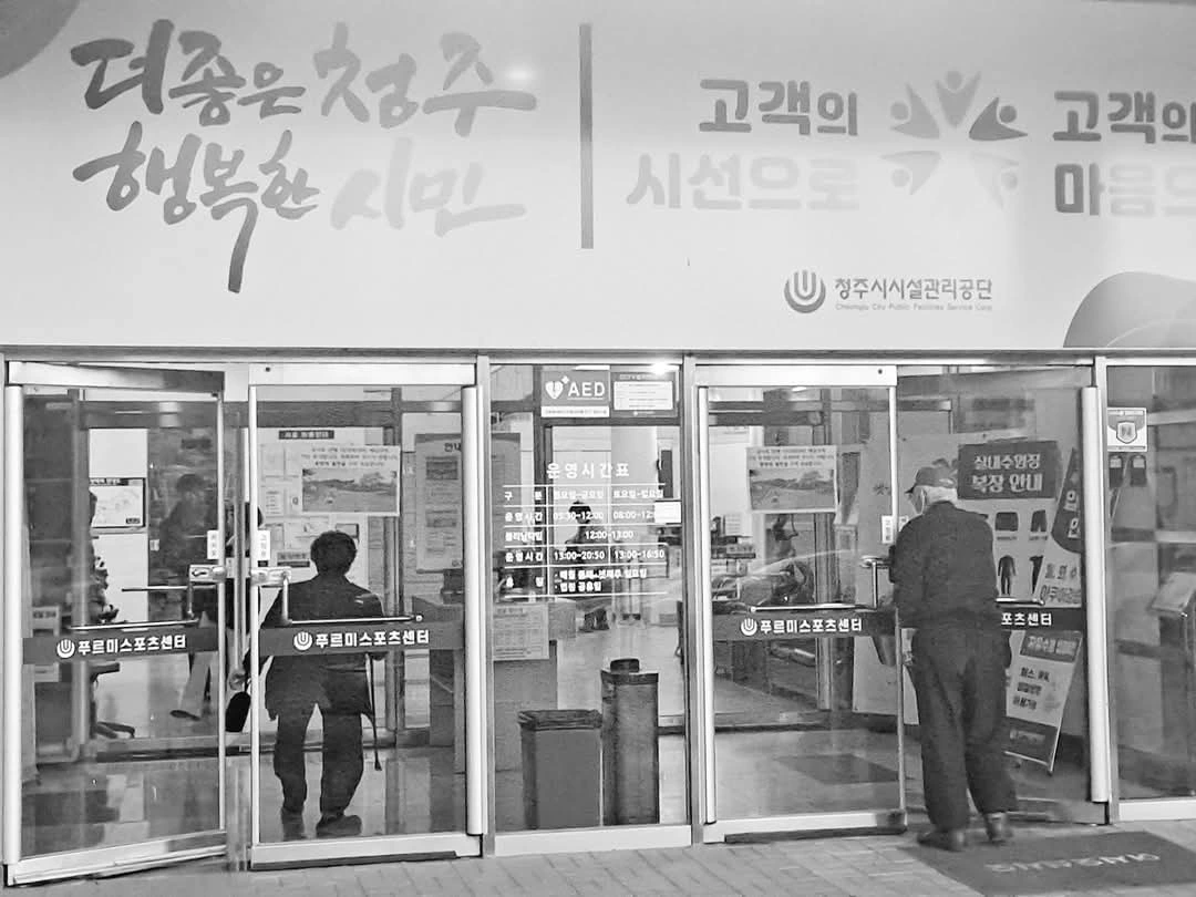 다른 출입문으로 들어가신다.