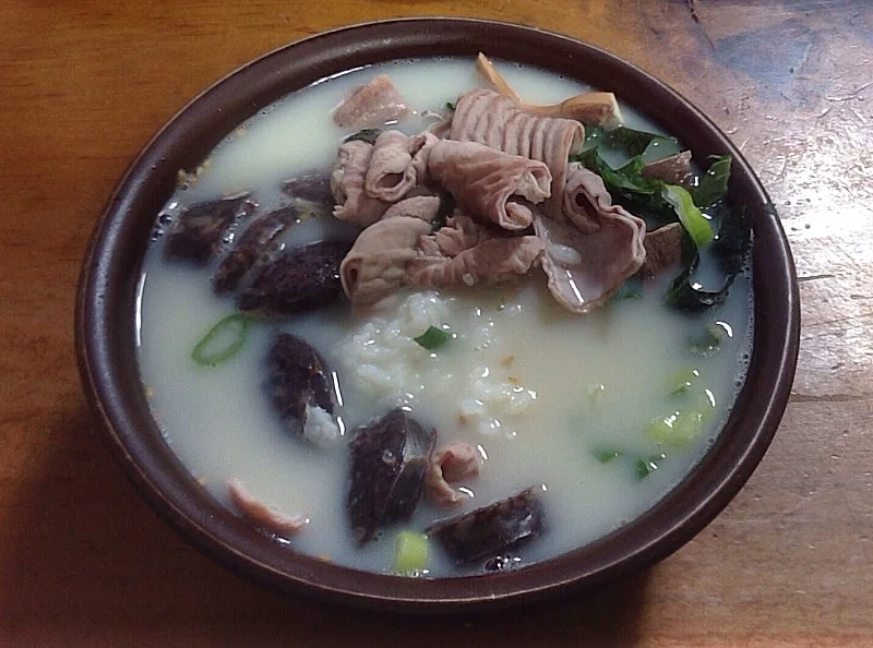 섞어국밥은 갈색빛 뚝배기에 밥을 담고 정성껏 우려낸 돼지 사골 육수로 몇 차례 토렴한다. 검붉은 당면순대, 연갈색 돼지 내장, 푸른 대파와 깻잎을 얹고 옅은 우윳빛이 도는 국물을 찰랑거리게 붓는다. 수북이 쌓인 건더기의 푸짐함과 다양한 색감이 눈맛을 자극한다.