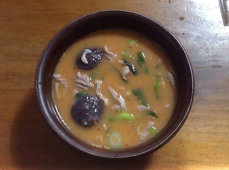 다진 양념과 새우젓, 깍두기 국물을 풀어 고루 섞는다. 붉은 다진 양념이 풀어지며 뽀얀 국물이 발갛게 변한다. 크게 한술 떠먹는다. 담백한 국물에 감칠맛, 짜지 않은 매운맛, 신맛등이 더해진다. 다양한 맛으로 입안이 풍성해진다.